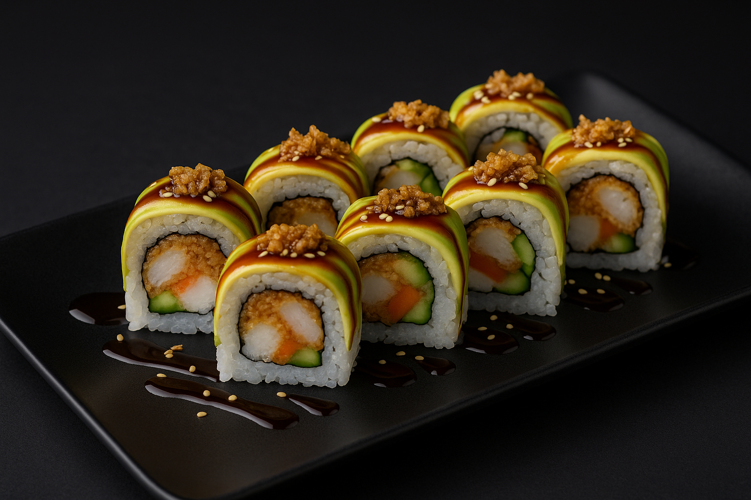 Cubierta: Salsa teriyaki, ciboulette y ajo frito