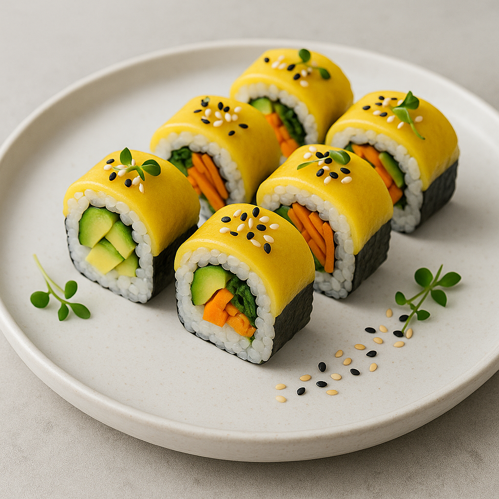 8 piezas de uramakis rellenos de palta y mango, envueltos en láminas de mango fresco, decorados con sésamo y brotes verdes. Un mix frutal y cremoso con un toque crujiente, perfecto para quienes buscan un sabor delicado y original.