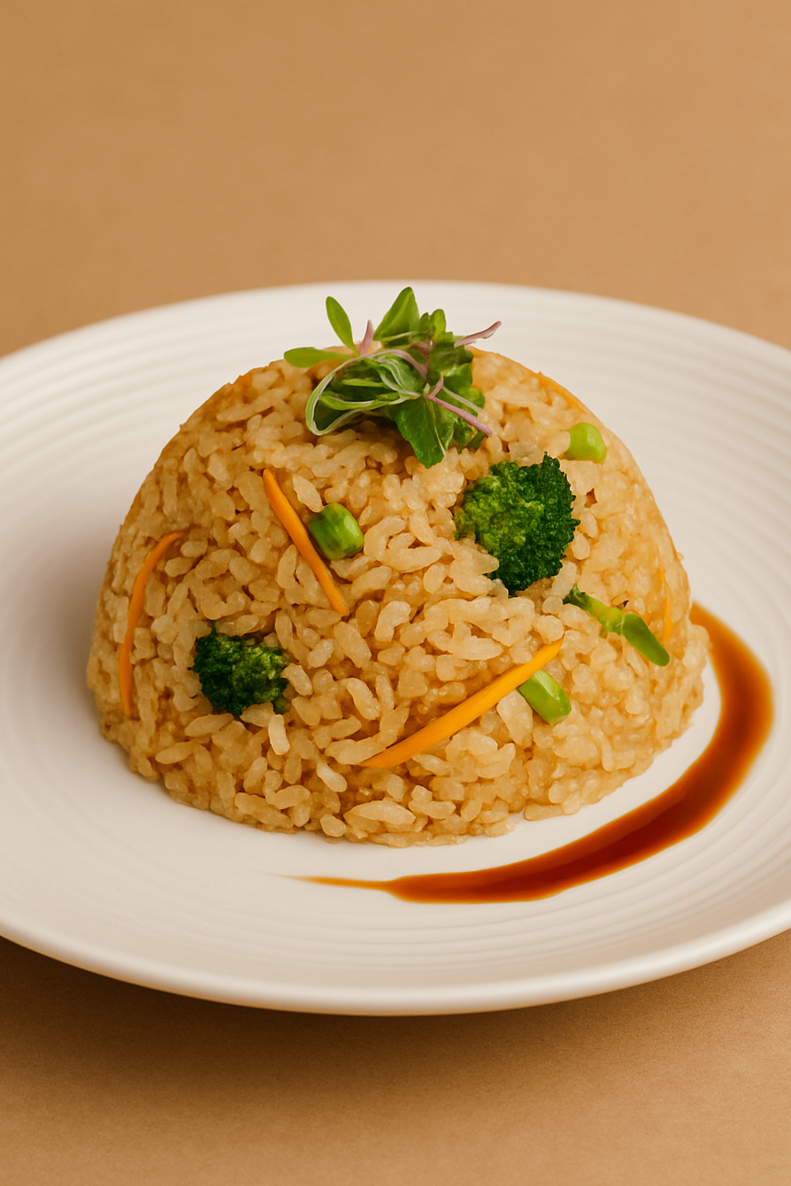 Arroz salteado al estilo japonés con vegetales frescos, huevo y toques de salsa de soya.